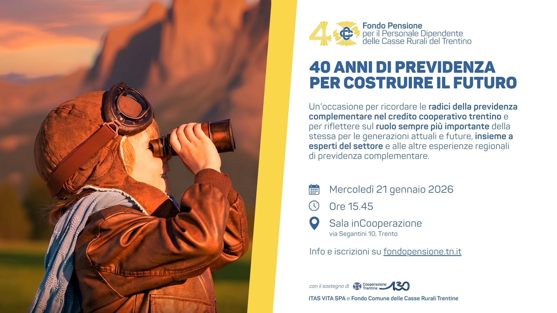 In occasione del 40esimo anniversario, il Fondo Pensione per il Personale Dipendente delle Casse Rurali del Trentino organizza un evento per riflettere sul ruolo sempre più importante della previdenza complementare.