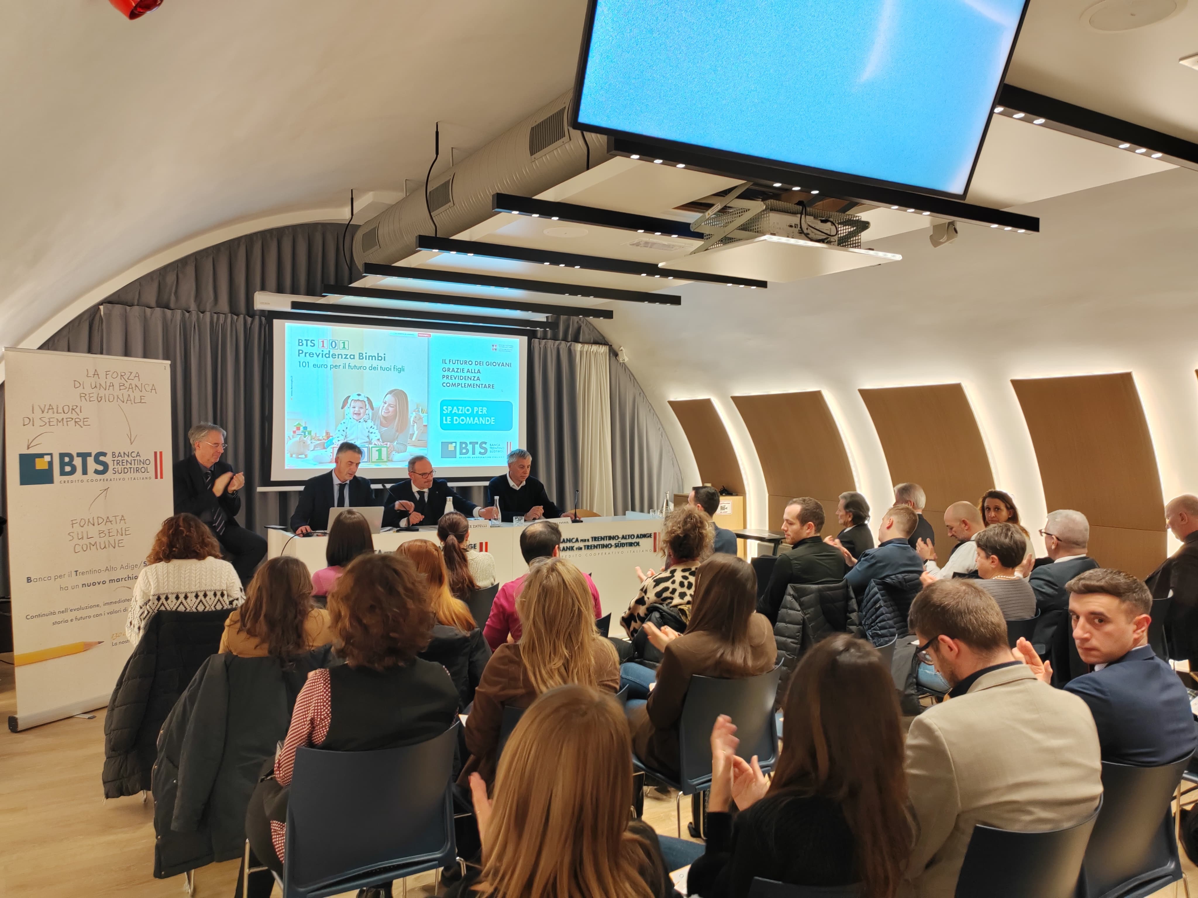 Oltre 150 partecipanti hanno seguito la serata informativa organizzata da BTS Banca Trentino-Südtirol sulla previdenza complementare e sull’incentivo regionale “Nuovi Nati”.