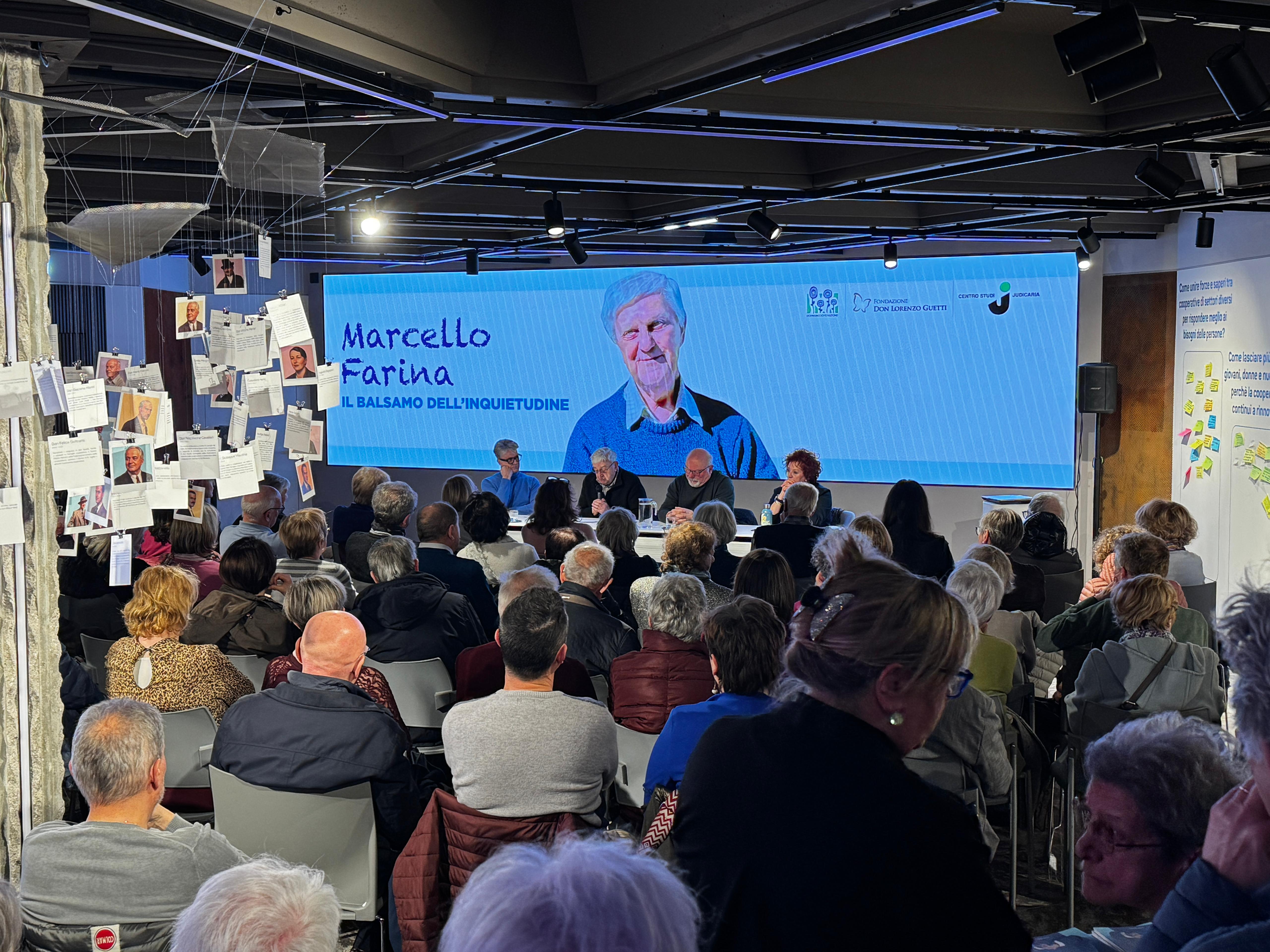 Fresco di stampa alla Piazza inCooperazione di via Segantini a Trento dove è stato presentato il libro dedicato a don Marcello Farina, mancato lo scorso novembre e profondo studioso e conoscitore del movimento cooperativo trentino.
